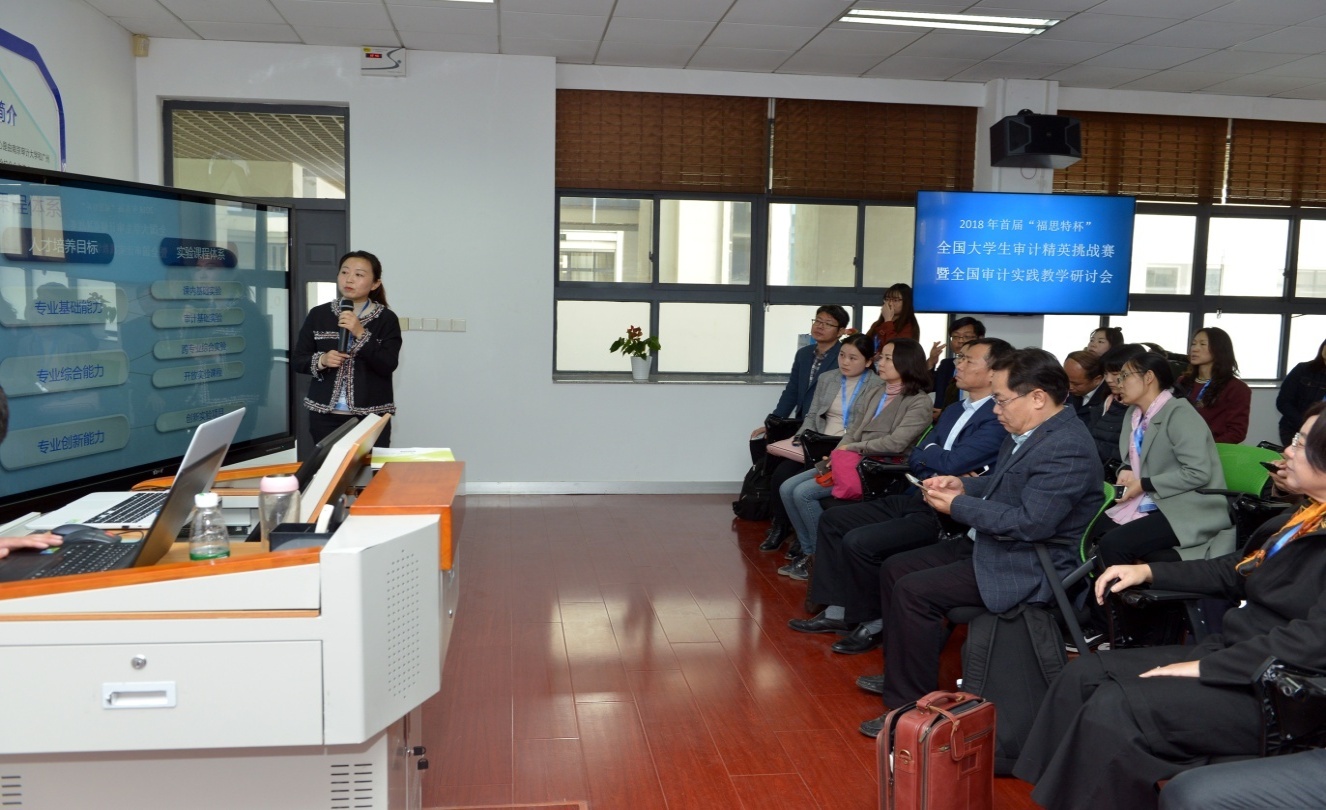 接着,审计精英挑战赛初赛和审计实践教学研讨会分别进行。学生赴竞秀南楼机房参加初赛,其他与会代表在112会议室聆听了主题报告。