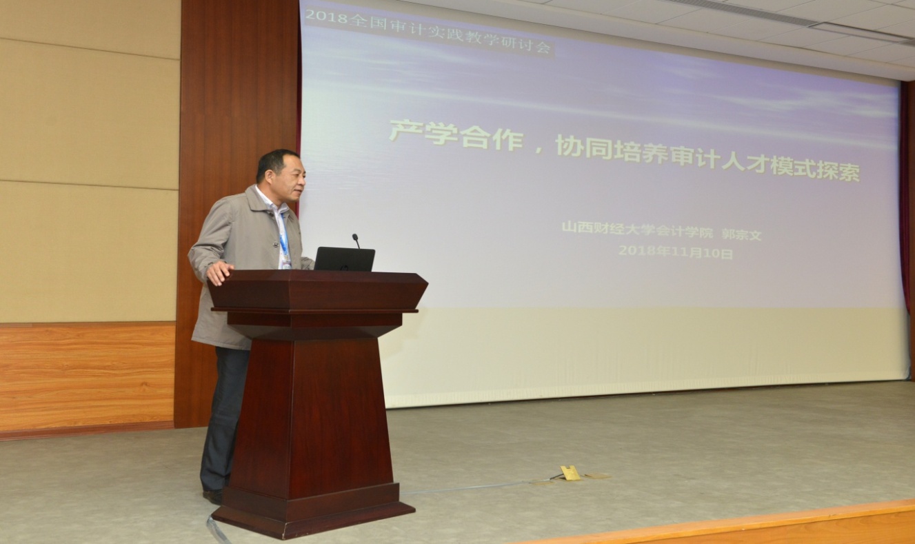 山西财经大学会计学院会计专业硕士教育中心主任郭宗文教授做了题为《产学合作,协同培养审计人才模式探索》的主题报告。