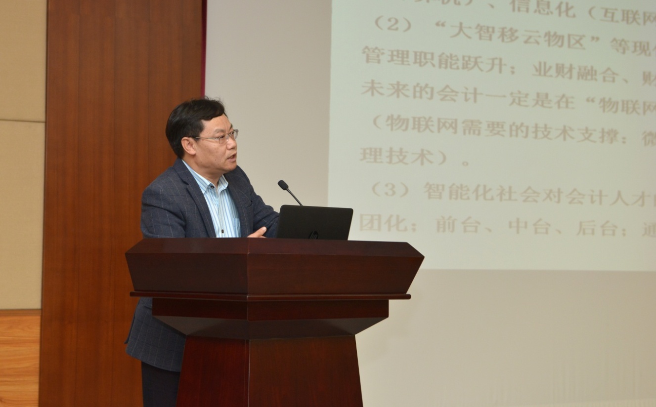 山东财经大学会计学院院长王爱国教授做了题为《关于智能审计人才培养的几点思考》的主题报告。