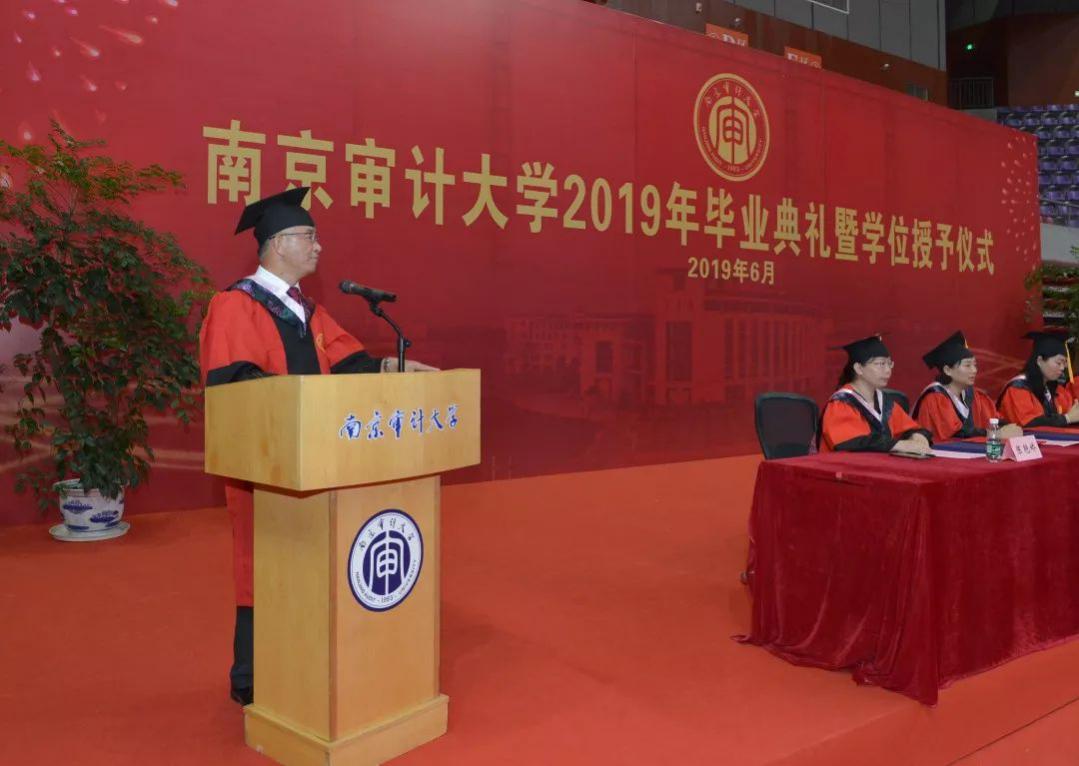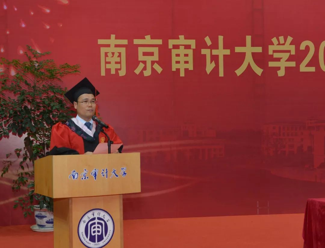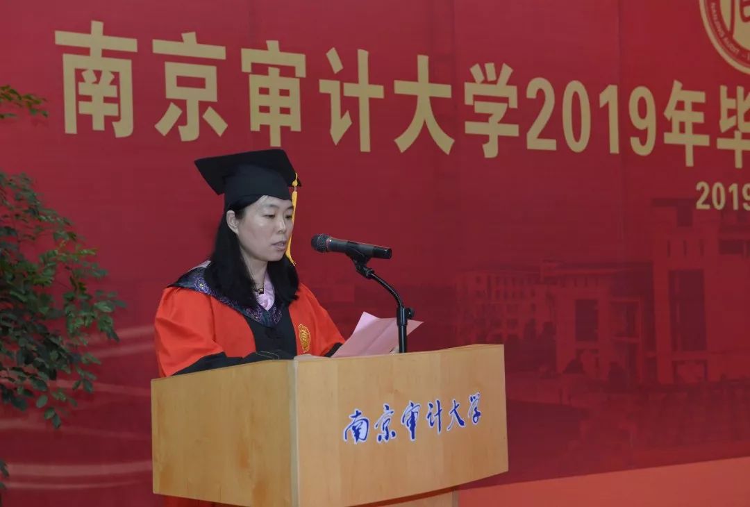 副院长王士红教授宣读《关于同意授予政府审计学院2019届包翰林等121名研究生硕士学位的决定》《关于同意授予政府审计学院2019届王雪茹等315名本科毕业生学士学位的决定》《关于同意授予政府审计学院2019届王玥等12名本科毕业生荣誉学士学位的决定》。