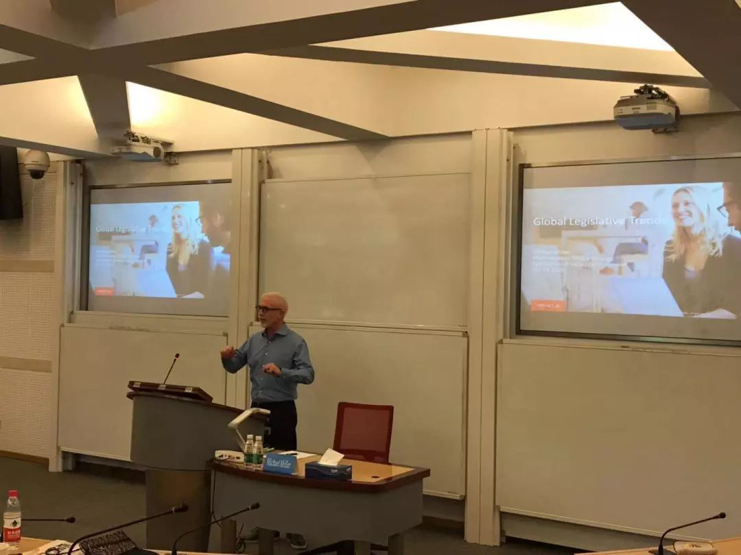 Miller先生的讲座内容分为三部分:甲骨文公司简介、全球应用战略和全球立法趋势。