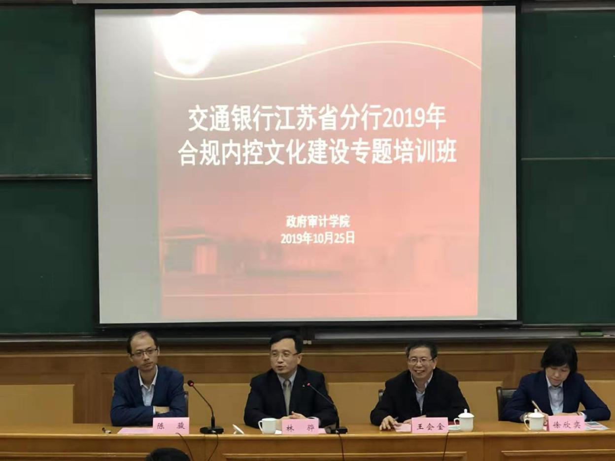此次培训是交通银行江苏省分行“敲钟问响——2019年合规内控文化高质量建设主题年系列活动”的重要内容。培训课程涵盖国家金融类监管法规解读、《审计法》解读、如何有效进行检查沟通、如何防范舞弊、内控管理五要素以及经济责任审计等,由政府审计学院组织具有丰富理论和实务经验的专家授课。
