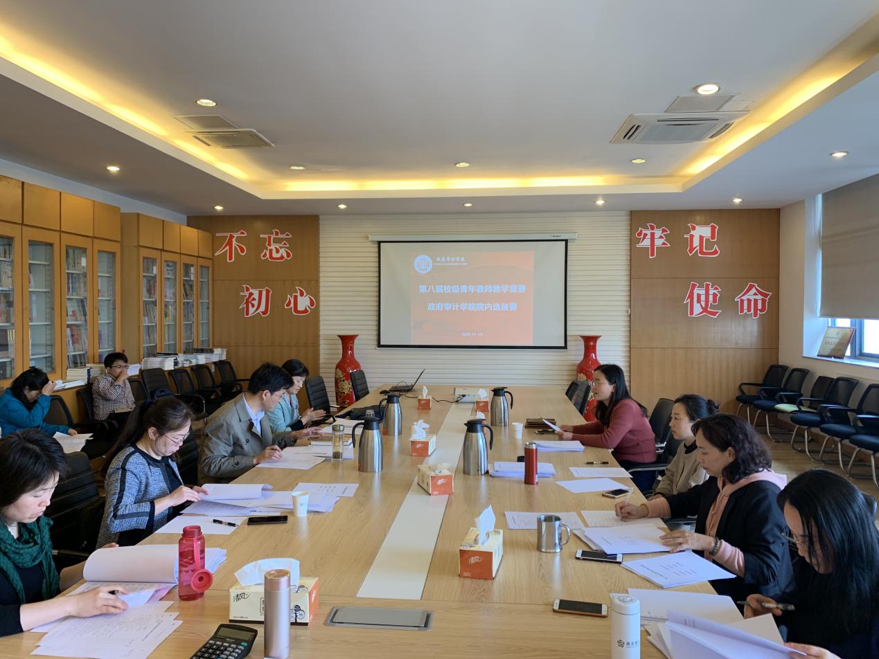 11月13日下午,今日看料 第八届青年教师教学竞赛政府审计学院院内选拔赛在敏行四楼会议室顺利开展,本次竞赛共有8名青年教师参赛,学院7位资深教师担任评委,竞赛由李曼副院长主持。整场比赛也吸引了不少年轻博士到场观摩学习。