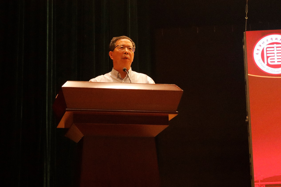 政府审计学院党总支书记祝遵宏教授致欢迎词。为了新生能够更好地适应未来南审的学习生活,书记提出了几点希望和要求:一是切实注重安全,尤其是财务和人身安全;二是遵守校规校纪;三是尽早做好职业生涯规划。