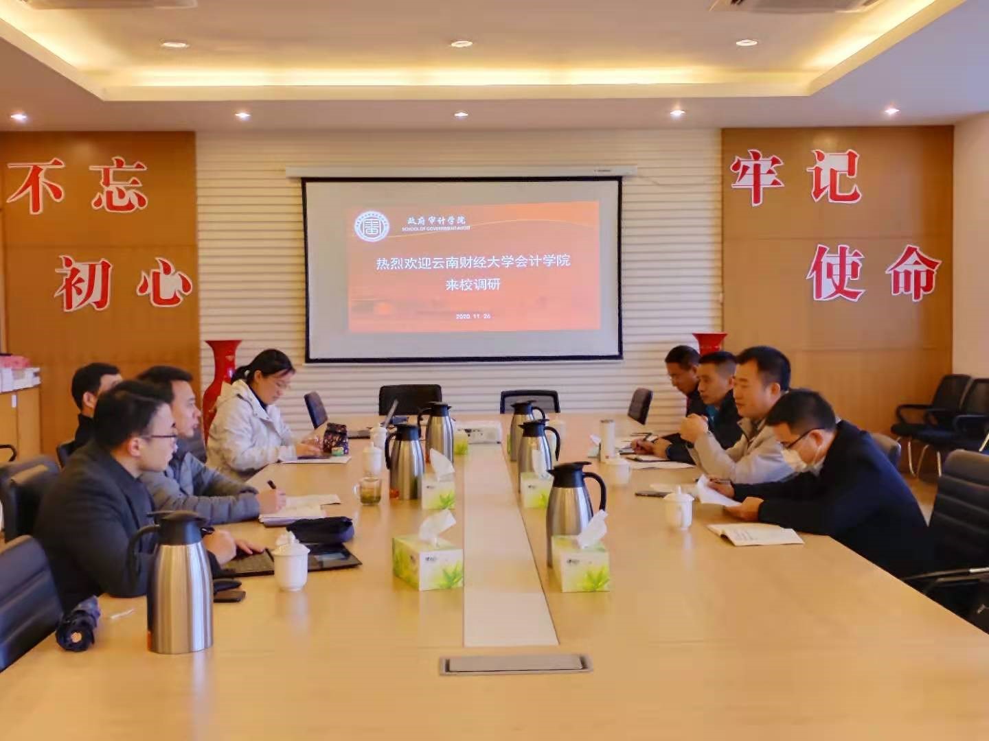 为了响应国家号召,使审计和大数据相结合,提高人才培养的质量,11月26日上午,云南财经大学会计学院余怒涛院长一行四人来到今日看料 就大数据审计学科的建设进行调研。会议由政府审计学院副院长李兆东主持,江苏省审计信息工程重点建设实验室副主任陈伟、政府审计学院大数据审计工作室主任倪敏,以及杨柔坚博士参加了交流会。