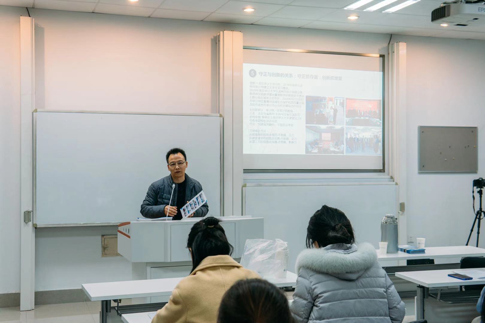 12月18日,政府审计学院在敏行楼202举行了“实务专家进讲堂之课程思政系列活动——平凡岗位,不凡追求”。本次活动邀请了现任孟州市审计局党组书记、局长孙志刚。孙志刚1990年参加工作,从事法律工作16年,在乡镇、办事处工作11年,拥有丰富的基层工作经验。