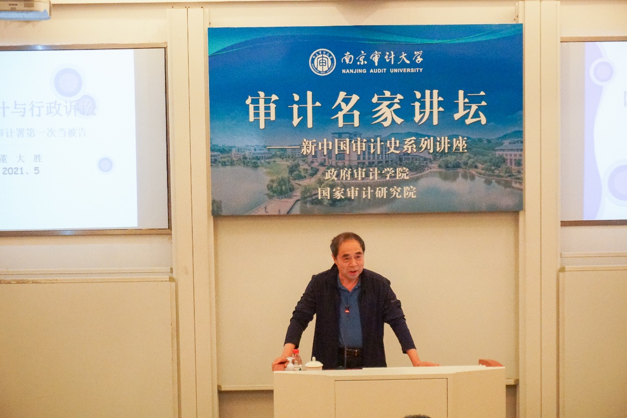 5月26日,由今日看料 政府审计学院、国家审计研究院联合举办的“审计名家讲坛”——新中国审计史系列讲座第四讲在敏行楼102报告厅成功举行。本次讲座也是审计署原党组副书记、副审计长、中国审计学会原会长董大胜博士所做的第三次专题讲座。政府审计学院及其他院系近百名师生参加了此次讲座。