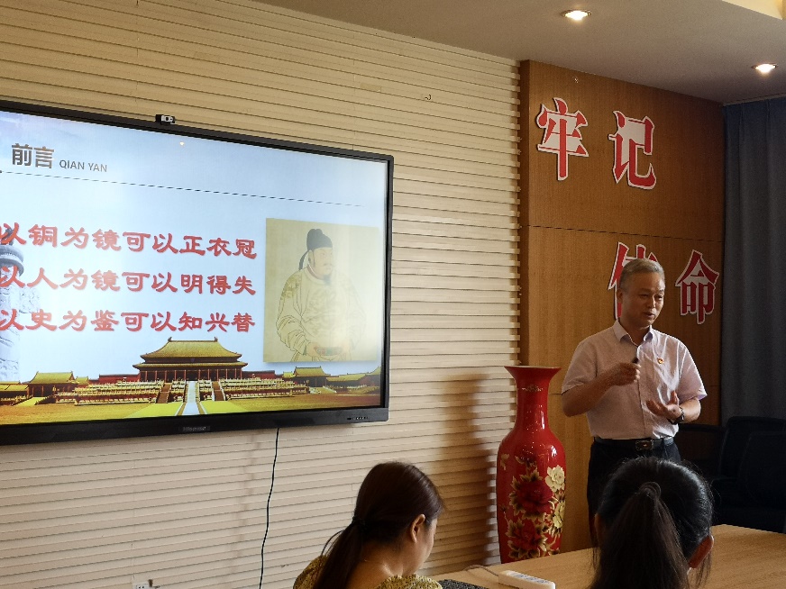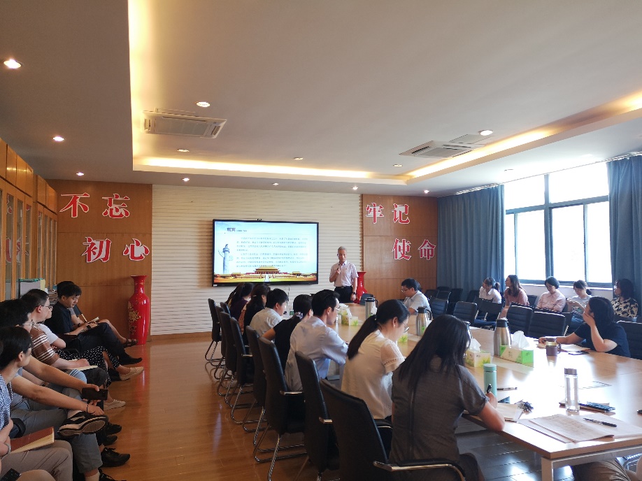 6月23日下午,政府审计学院党史学习教育专题党课在敏行楼四楼会议室举行,党课由政府审计学院党委书记童瑞连主讲,学院全体党员教职工参加。