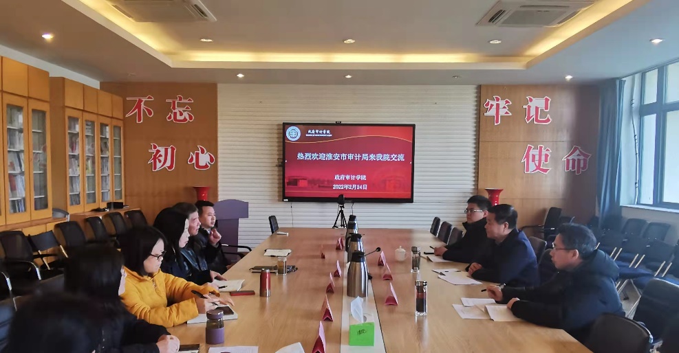 周维培首先代表政府审计学院向淮安市审计局客人的到来表示热烈欢迎。孙德军介绍了淮安市审计工作的总体情况。双方就如何进一步落实学校与淮安市政府签署的深化合作协议进行了交流,围绕研究生实习工作、如何借助挂职锻炼的机会提升年轻干部综合素质、南审淮安研究院运行方式等事宜,开展了深入的探讨。