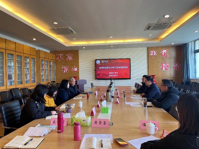 对接校地合作事宜。政府审计学院院长周维培、党委书记童瑞连、校巡察领导小组办公室副主任蒋丽萍、学院副院长刘静等出席座谈会。政府审计学院执行院长、国家审计研究院执行院长王士红主持会议。