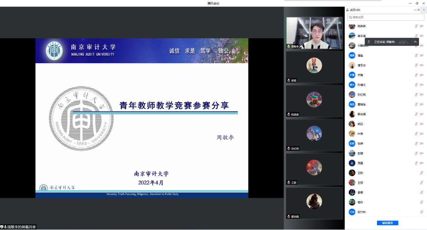 线上教学培训交流会结束后,学院特别邀请周敏李老师为年轻教师做青年教师教学竞赛参赛分享。