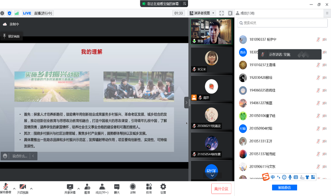 本次培训由五位富有“互联网+”大赛指导、参赛、评委经验的专家分别带来“赛事解读”“站好赛道,打有准备的‘互联网+’之仗”“解读‘互联网+’大赛红旅赛道”“指导老师如何高质量备赛”“团队如何做好大赛准备”等五个主题讲座。培训期间,与会师生通过与专家的交流互动,对项目选题、赛道选取、商业计划书撰写、路演PPT设计与提升都有了更加清晰的认识,对参赛备赛也有了更加明确的方向。