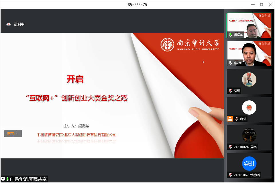 第八届中国国际“互联网+”大学生创新创业大赛已启动,为调动学生参赛积极性,帮助师生充分备赛,416-17日,政府审计学院与创业学院联合举办了“互联网+”大学生创新创业大赛培训班。培训采取线上形式举办,政府审计学院副院长李兆东全程主持,吸引了全校近150有志指导和参加本届“互联网+”大赛的老师、青年学子参与。