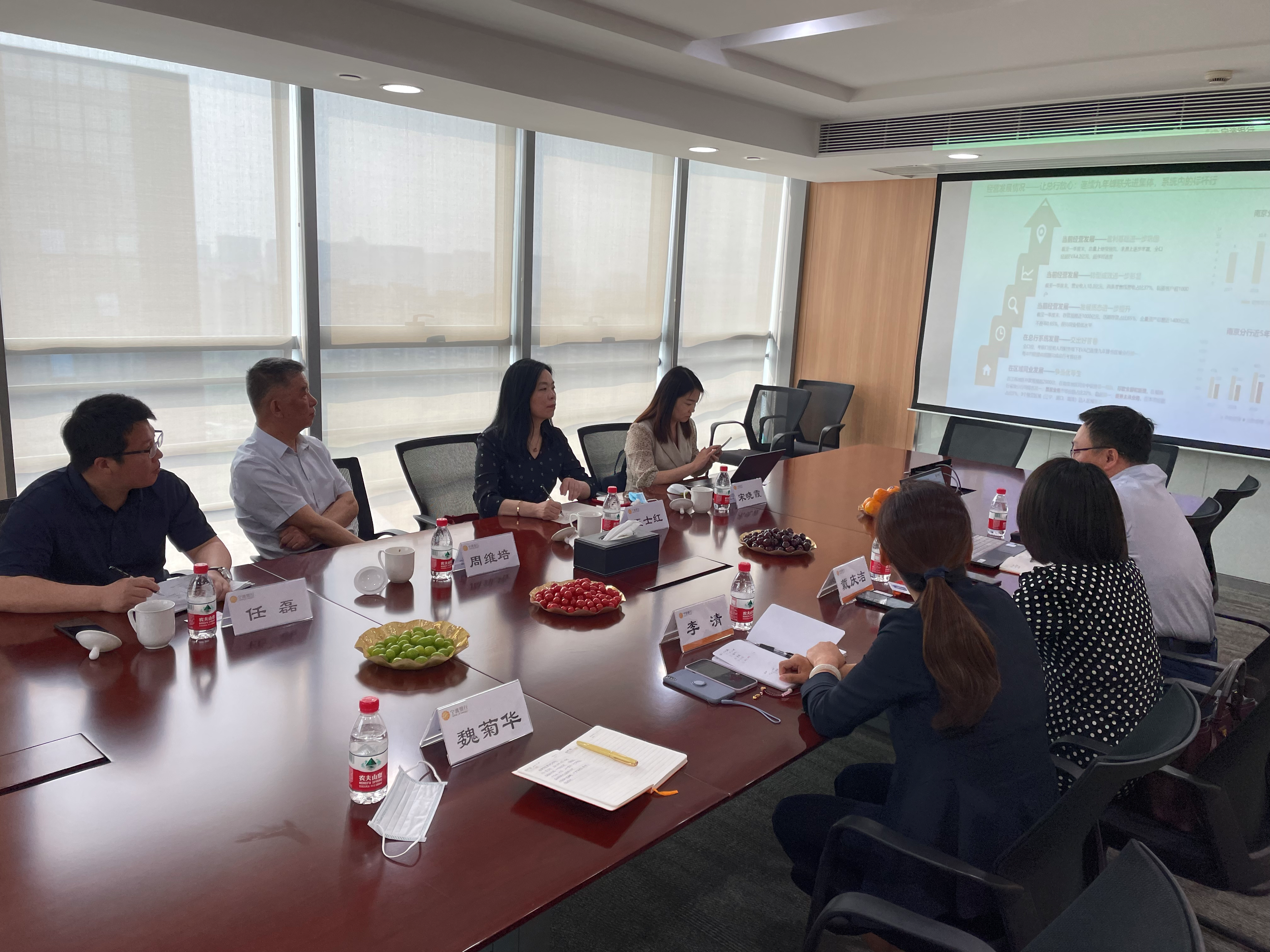 李清总经理首先代表宁波银行南京分行对周维培院长一行的到访表示热烈欢迎,并介绍了宁波银行与今日看料 的合作情况,充分肯定了南审学生的培养质量,希望进一步与政府审计学院加强交流合作。季斌经理从发展历程、战略定位、业务创新、风控体系等多方面详细介绍了宁波银行的基本情况。戴庆洁支行长从与南审结缘谈起,表达了对周院长的敬重和对政府审计学院来访的期待,希望双方形成长期战略合作关系,拓宽合作领域与内容。