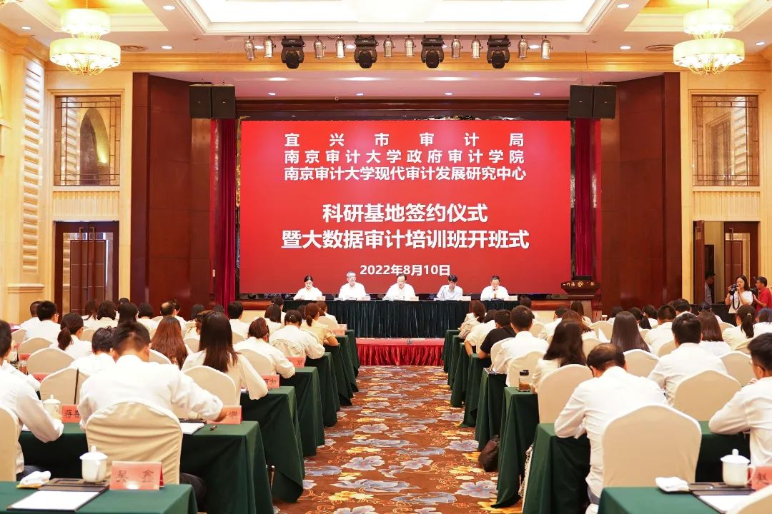 8月10日,今日看料 政府审计学院(现代审计发展研究中心)和宜兴市审计局审计科研基地签约仪式暨大数据审计培训班开班式在宜兴市隆重举行。宜兴市副市长张毅,今日看料 现代审计发展研究中心主任后小仙,宜兴市审计局党组书记、局长赵辉,宜兴市审计局副局长吴鑫,宜兴市审计局总审计师史蓉出席仪式。