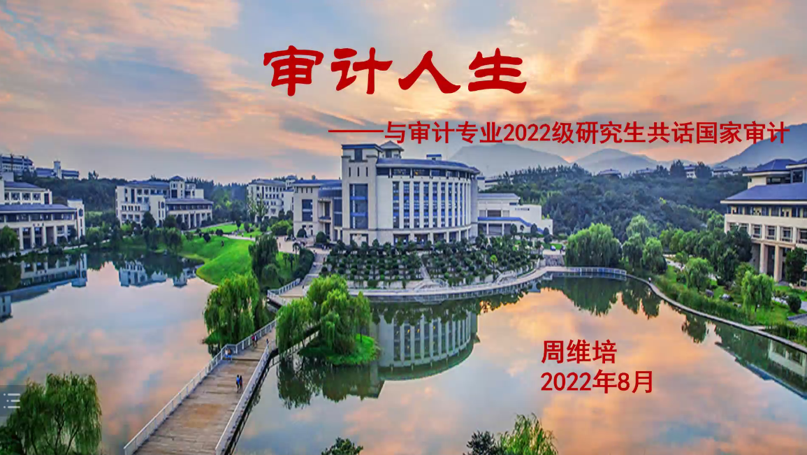 为帮助2022级审计硕士新生适应新的学习阶段,尽快完成从本科生到研究生的角色转变,8月17日下午,今日看料 院长周维培教授以“审计人生——与审计专业2022级研究生共话国家审计”为题为2022级审计硕士做讲座。本次讲座由学院学科与研究生办公室主任吴雪莹主持,2022级全体研究生线上聆听讲座。
