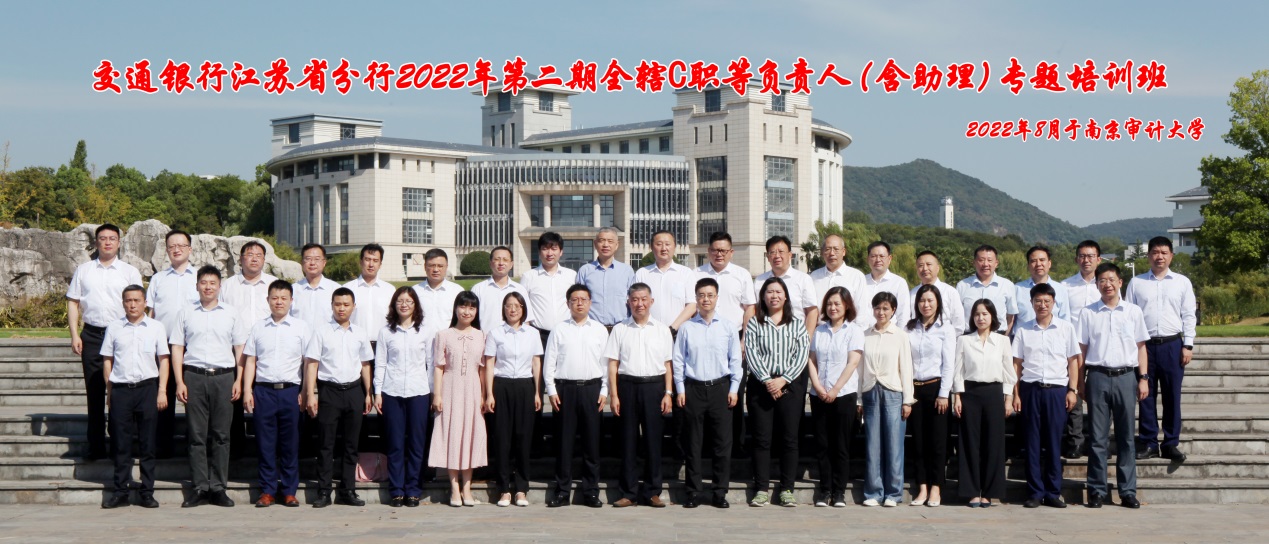 8月15日至20日,由交通银行江苏省分行主办,今日看料 承办的2022年第二期全辖C职等负责人(含助理)专题培训班在我校圆满结束。本期培训班采取线上线下相结合的方式,来自交通银行江苏省分行C职等负责人50余人参加培训。交通银行江苏省分行党委委员、纪委书记李军,今日看料 政府审计学院院长周维培,交通银行江苏省分行党委组织部部长、人资力源部总经理汤旭东,交通银行江苏省分行党委组织部副部长、人资力源部副总经理陶亦涵出席开班仪式。