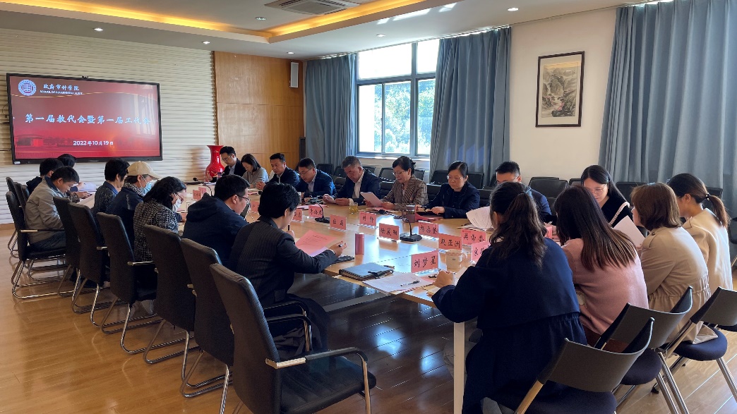 10月19日下午,政府审计学院第一届教职工代表大会在敏行四楼会议室举行。学院教职工代表参加大会。会议由政府审计学院党委副书记、副院长戚振东主持。